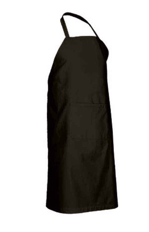 • Avental preto com alça de pescoço e bolso frontal
