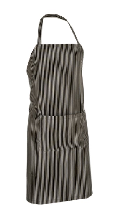 Alças laterais grossas para ajustar com um nó na cintura e uma alça larga para pendurar à volta do pescoço.