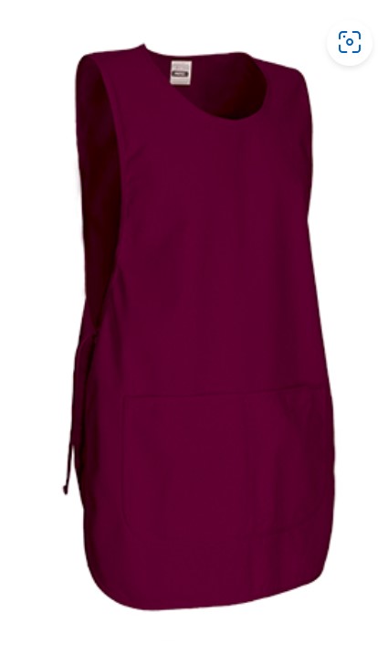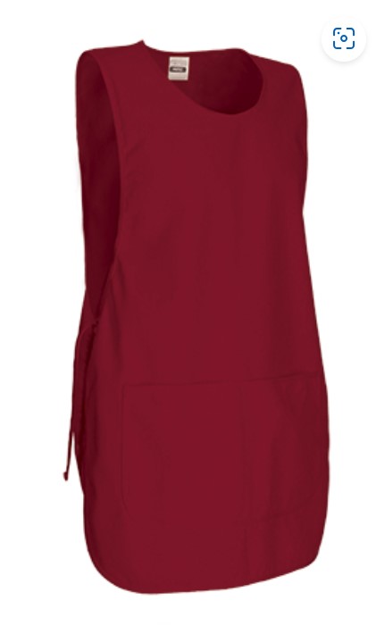 • Avental vermelho escuro com bolso frontal e cordões laterais