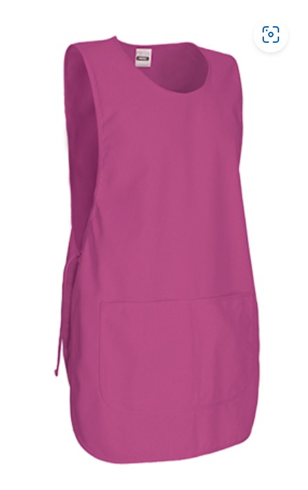 • Avental rosa de tecido com bolso frontal e fitas laterais