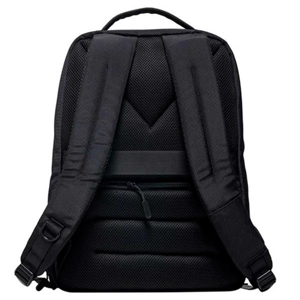 • Mochila preta vista de costas com alças almofadadas e fecho zip