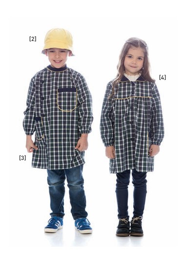Bata infantil em cambraia leve, com padrão xadrez azul e verde.