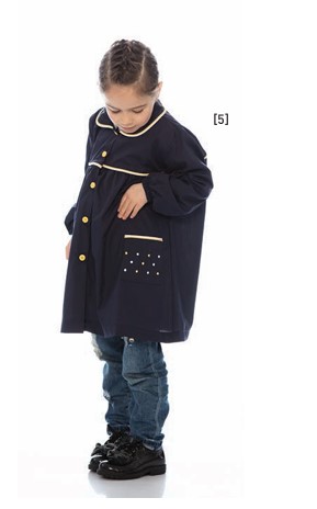 • Criança com casaco azul escuro de botões dourados e bolso com detalhes em branco
