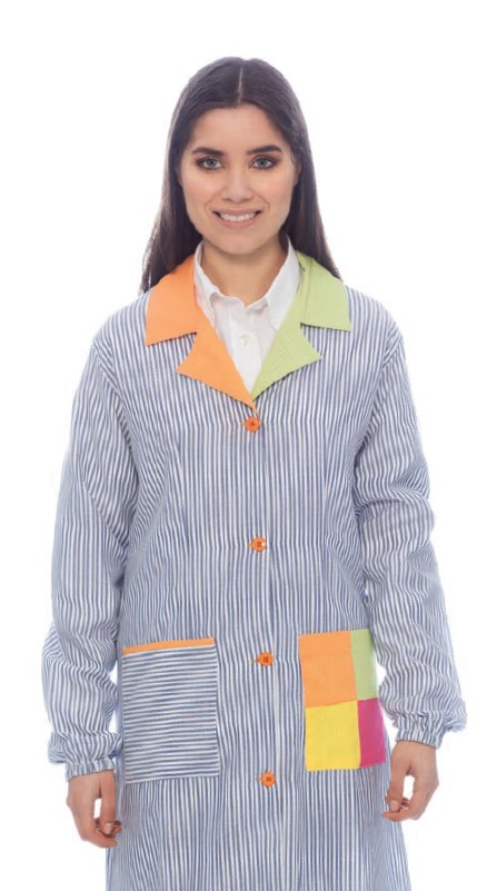 Bata Educadora Riscas 65% Poliester 35% Algodão 130 gr/m2