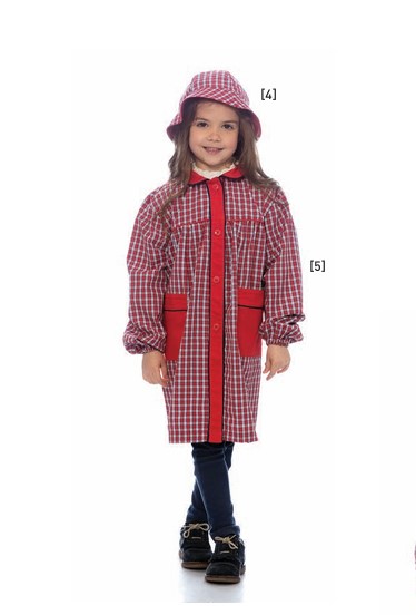 Bata escolar menina Xadrez 65% Poliéster 35% Algodão 140 gr/m2 27,35 € Desconto de %. IVA incluído. Partilhar Tamanhos 1 2 3 4 5 6 7 8 Quantidades 1 10 25 50 Comprar Contactar SKU: 4854 Bata infantil para menina, confeccionada em cambraia leve com padrão xadrez vermelho e branco. Apresenta gola vermelha com vivo em tom escuro, botões frontais com reforço em vermelho e bolso também em vermelho com aplicação decorativa escura. As mangas têm punho com elástico para maior conforto e liberdade de movimentos. Modelo único e exclusivo, ideal para uso escolar Padrão: Xadrez vermelho e branco Gola: Vermelha com vivo escuro Botões frontais com reforço em vermelho Bolso:Vermelho com aplicação escura. Corte: Infantil feminino Até 8 dias úteis Stock: Limitado ao existente Marca FVC