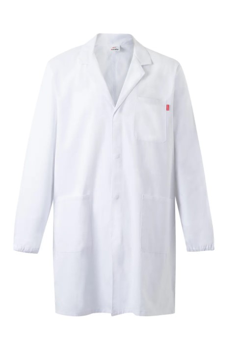 • Casaco de laboratório branco com bolsos e manga comprida