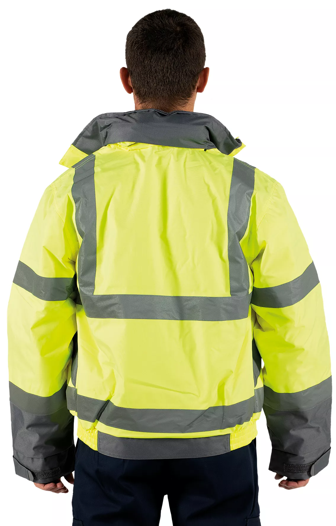 Casaco de alta visibilidade amarelo e cinzento com faixas refletoras