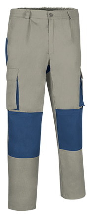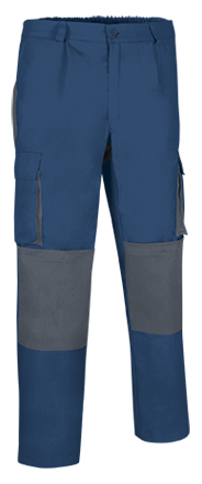Calças de trabalho azul escuro e cinzento com bolsos laterais