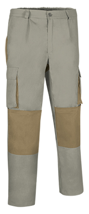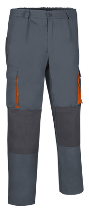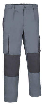 Calças de trabalho cinzentas com reforços pretos e bolsos laterais