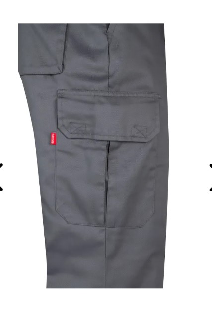 Seis bolsos: 2 bolsos franceses 2 bolsos de remendo, com fole central, pala e velcro 2 bolsos traseiros de fole, com pala e velcro Sarja. 65% poliéster - 35% algodão / 200 gr/m2 Forro. 100% poliéster / 60 gr/m2 Enchimento. 100% poliéster / 60 gr/m2