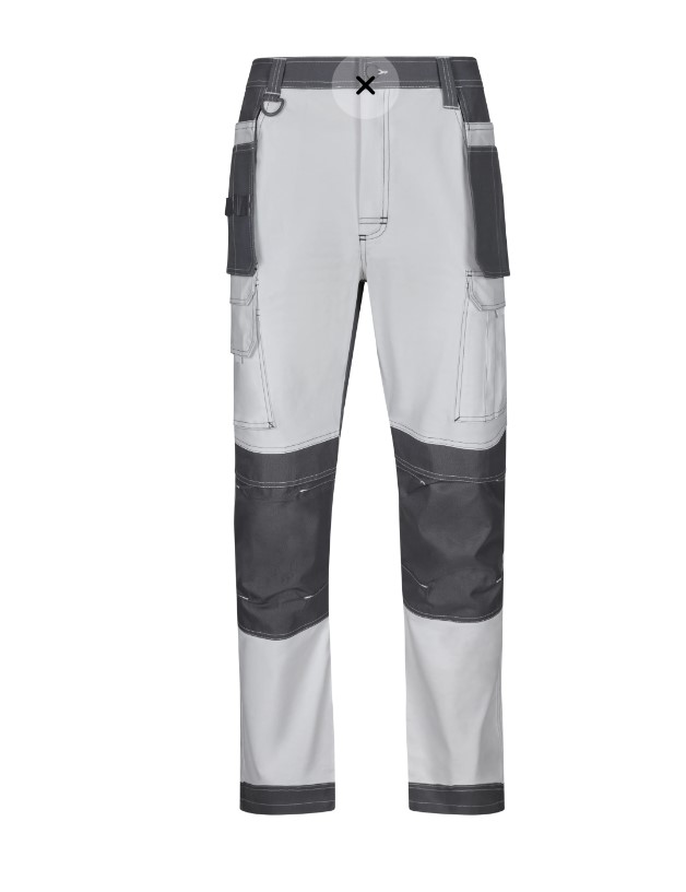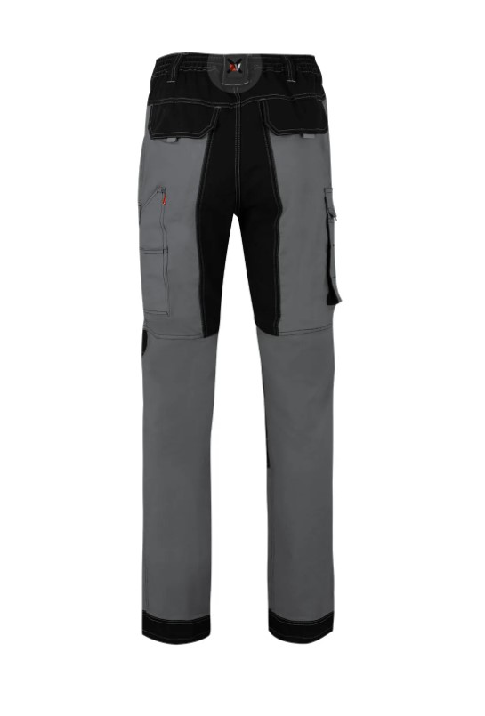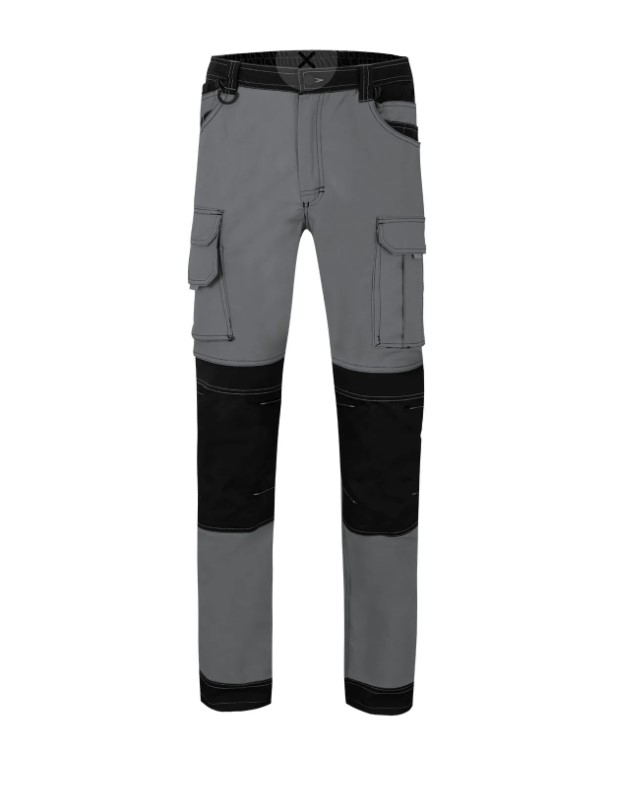 • Calças de trabalho cinzento e preto com bolsos e botão