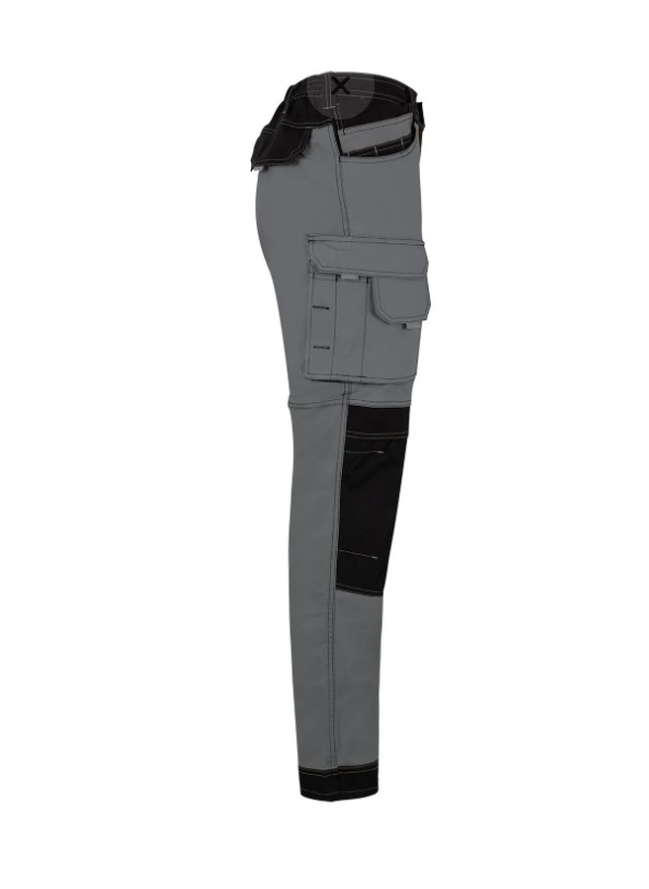 • Calças de trabalho cinzento com reforços pretos e bolsos laterais