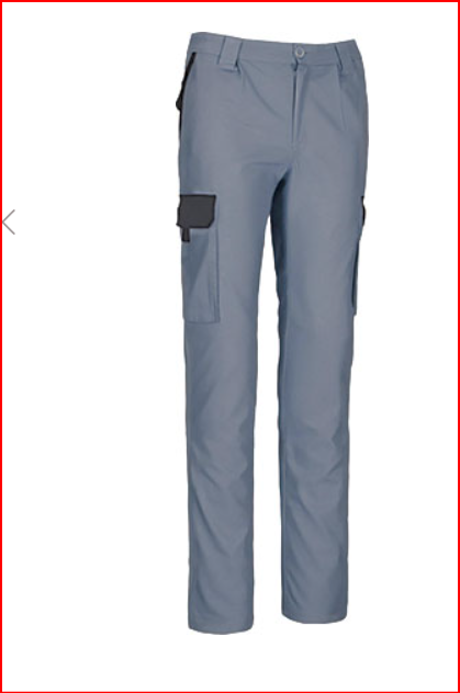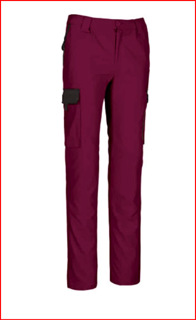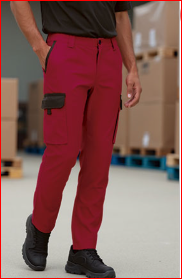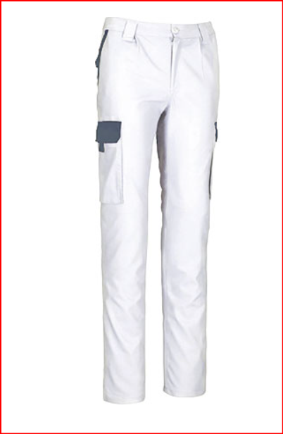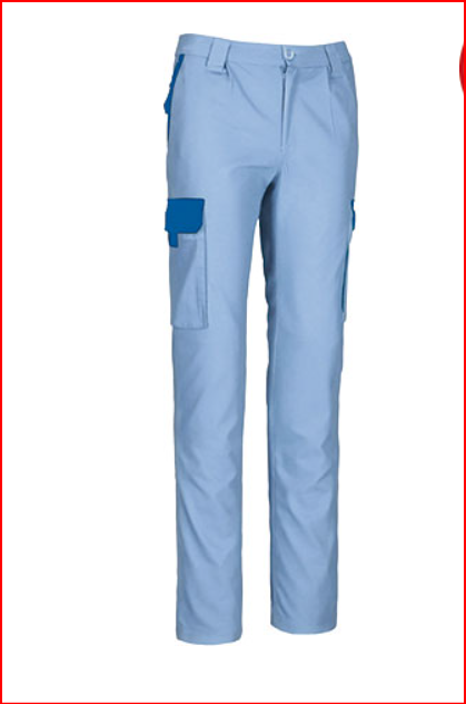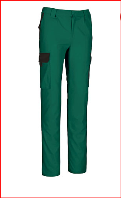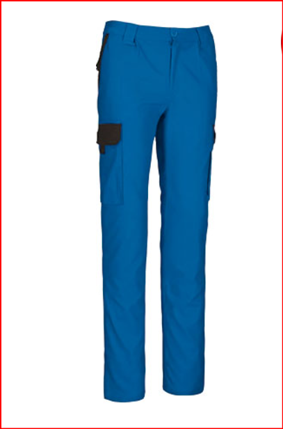 Calças de trabalho multibolsos com design bicolor.