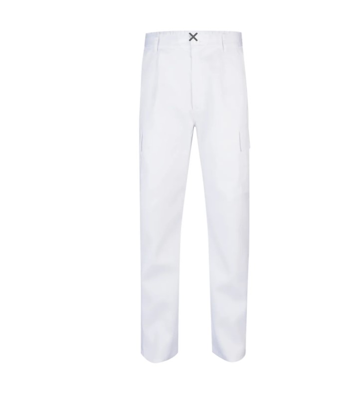Calças de trabalho cinzentas com bolsos laterais e botão na cintura