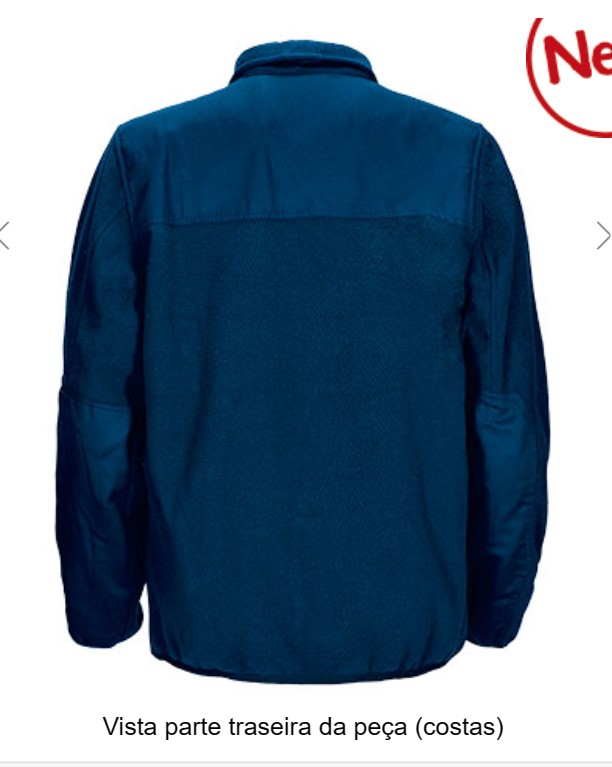 • Casaco azul escuro visto de costas em fundo branco com parte de círculo vermelho e texto 'Ne'