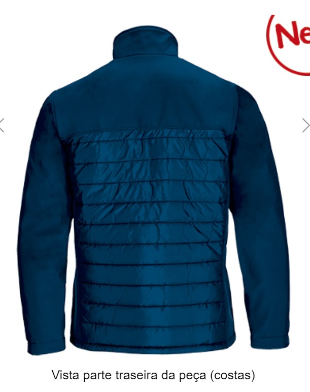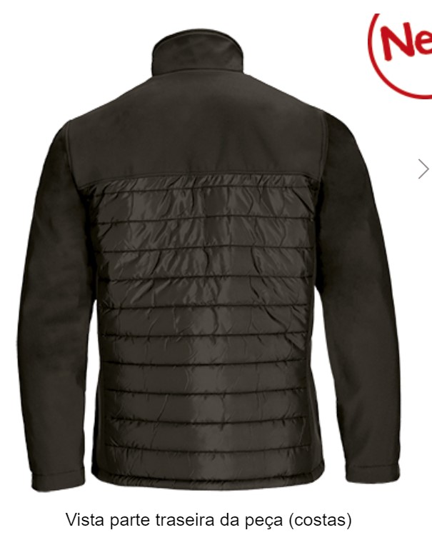 Fabricado com tecido acolchoado de três camadas e tecido softshell no canesú e nos lados.