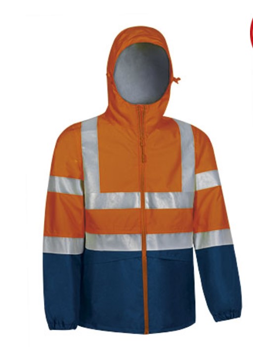 Fabricado com tecido Canvas impermeável no exterior e forro liso no interior, com duas fitas retro-refletoras de calor no tronco, ombros, costas e mangas para melhorar a elasticidade e aumentar a visibilidade.