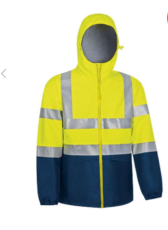 Casaco impermeável de alta visibilidade interior 100% poliester densidade 100Grs. exterior 85% poliester 15% poliester 100% densidade