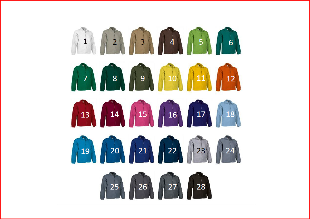 Casaco Polar com Fecho 300Grs. 100% Poliéster 2ª Palete cores