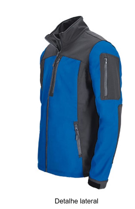 Casaco softshell multibolsos com desenho bicolor.