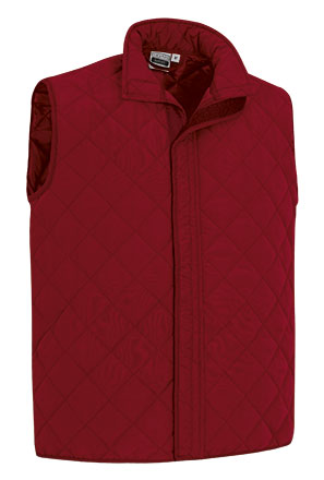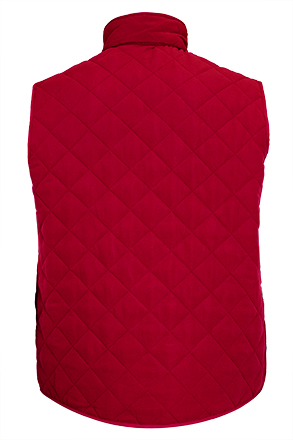 Colete acolchoado vermelho com padrão de diamante e fecho de correr
