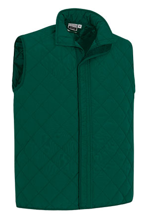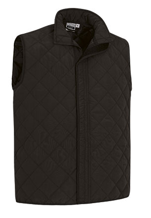 Colete acolchoado preto masculino com gola alta e padrão de losangos.