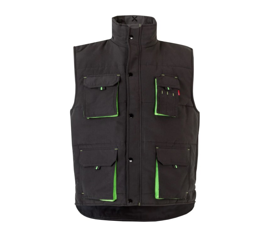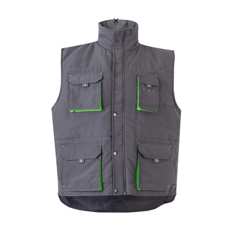 • Colete de trabalho cinzento com bolsos e detalhes verdes