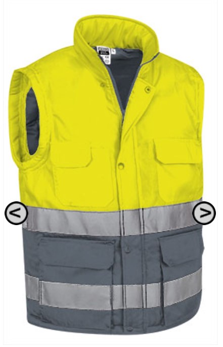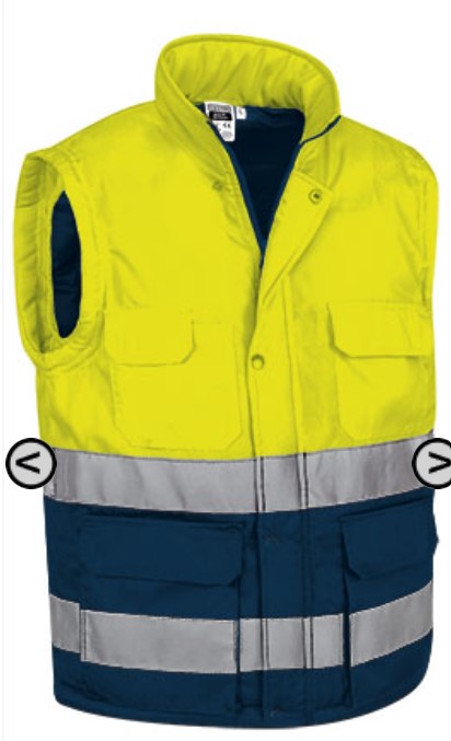 Colete Parte exterior 80% poliéster, 20% algodão, tecido de sarja 200 grs/m2. Poliéster 100% acolchoado 250 grs/m2 34,50 € Desconto de %. Partilhar O produto estará disponível para compra brevemente. 6 bolsos externos. 2 compartimentos para canetas. 1 bolso interno. Fecho de correr interno para fácil impressão / bordado. Ajuste de encaixe nas laterais. Certificado com a norma EN ISO 20471:2013 / A1:2016 (1). Marca VALENTO Características