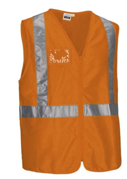 • Colete de alta visibilidade laranja com fitas refletoras prateadas