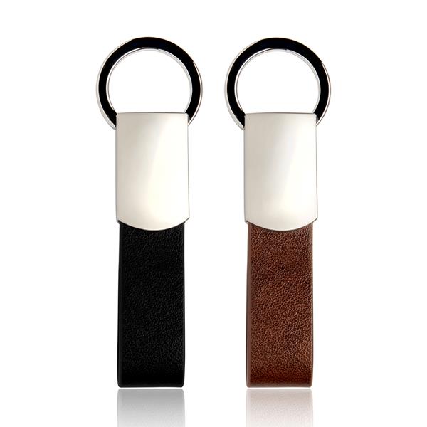 • Dois porta-chaves em couro preto e castanho com argola metálica