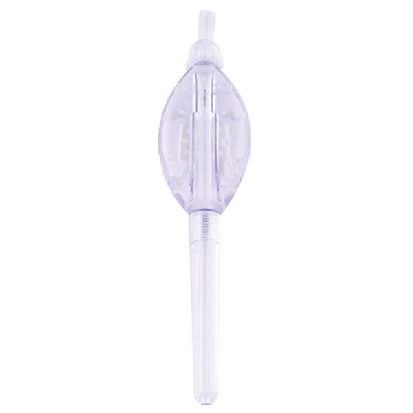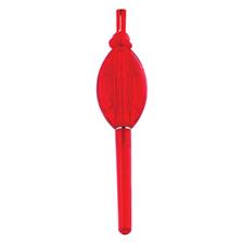• Objeto plástico azul translúcido com haste longa e estrutura oval