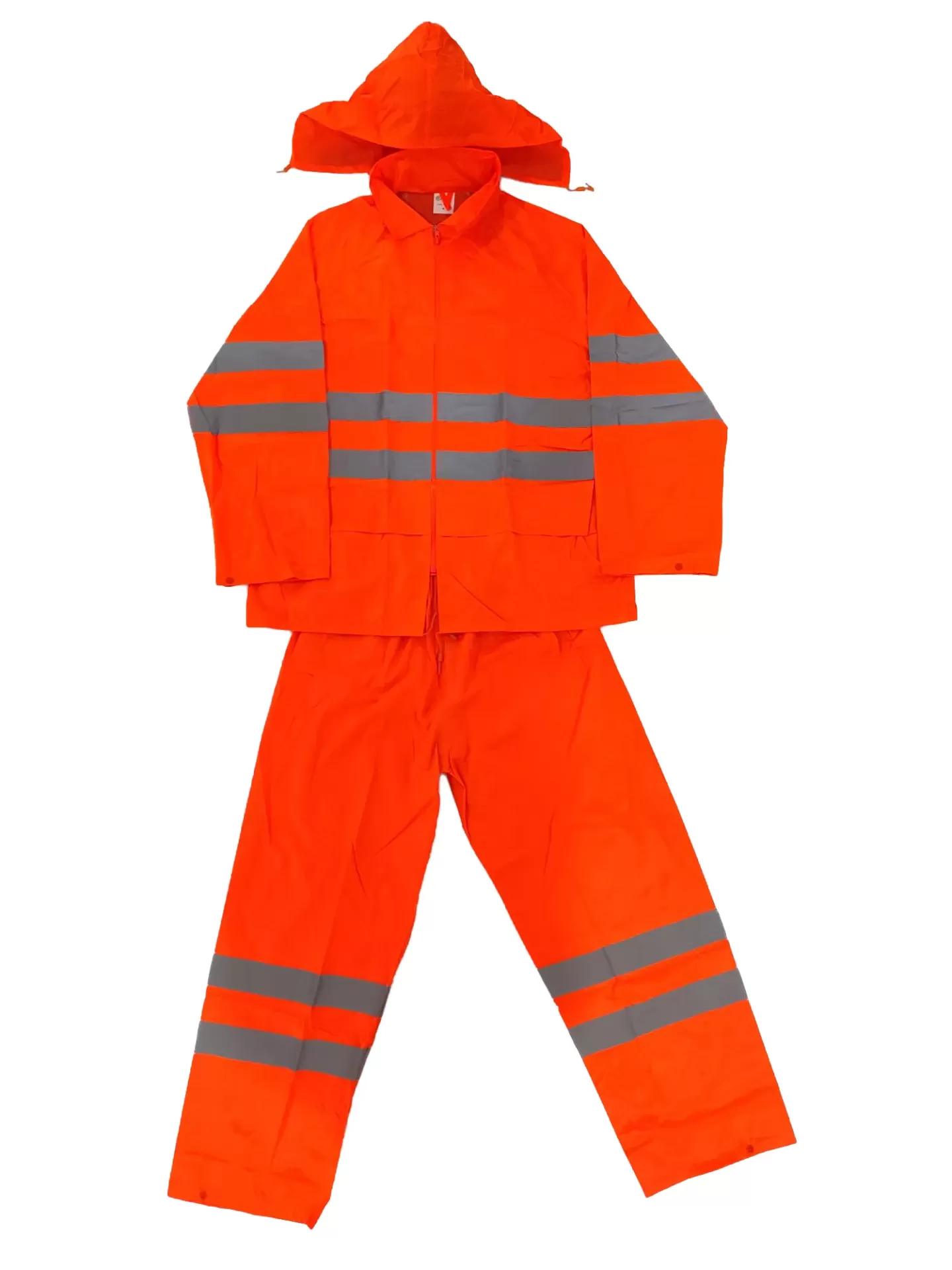 Roupa impermeável de alta visibilidade laranja com fitas refletoras cinzentas