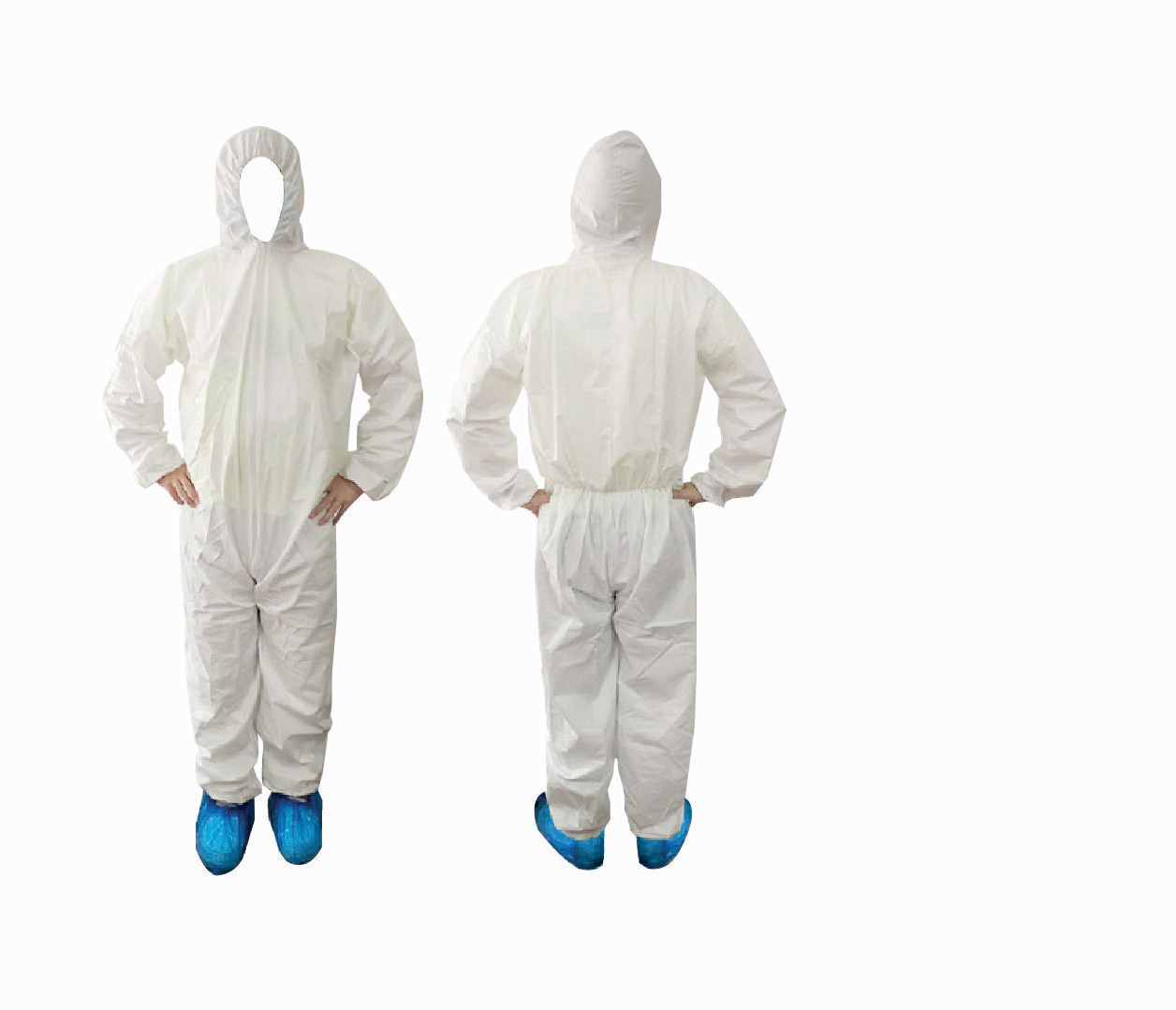• Macacão protector branco com capuz elástico e máscara de proteção