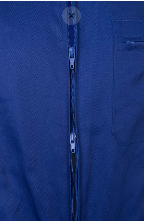 • Macacão de trabalho azul com mangas compridas e bolso no peito