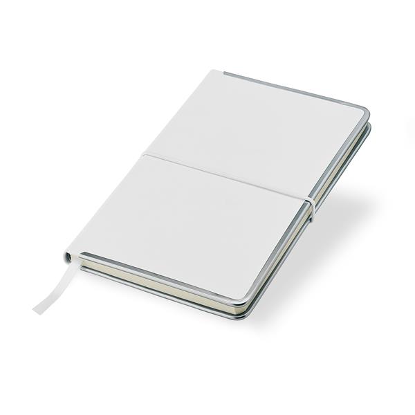 • Caderno branco com elástico e marcador de fita
