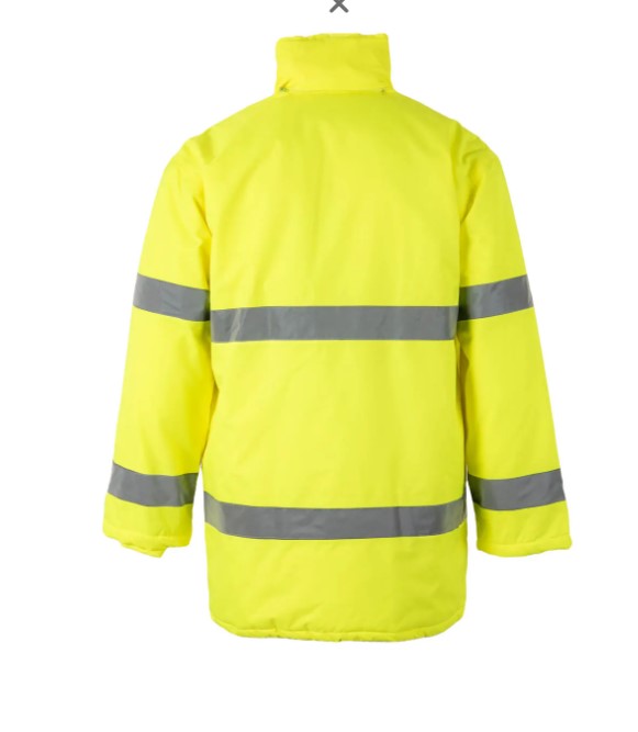 • Casaco de segurança amarelo fluorescente com faixas refletoras cinzentas visto de costas