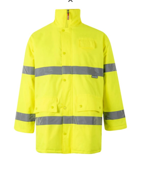 • Casaco amarelo de alta visibilidade com fitas refletoras cinza