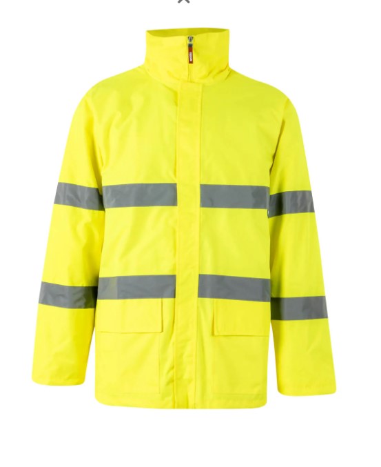 • Casaco amarelo de alta visibilidade com faixas refletoras cinzentas