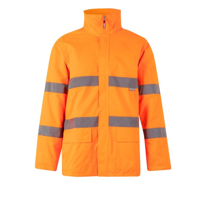 • Casaco de alta visibilidade laranja com faixas refletoras cinzentas