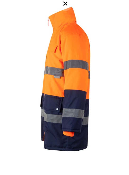 • Casaco de alta visibilidade laranja e azul com faixas refletoras