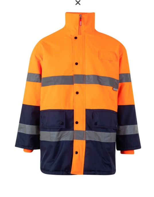 • casaco alta visibilidade laranja e azul com faixas refletoras