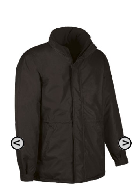 Parka Tecido exterior 200 grs/m2. Acolchoado 100% poliéster 400 grs/m2. 56,60 € Desconto de %. Partilhar O produto estará disponível para compra brevemente. Tecido impermeável. Forro polar interno. 2 bolsos inferiores com aba. 2 bolsos laterais. 1 bolso no peito esquerdo e bolso interno com zíper. Punhos de manga com elástico. Capuz com cordão ajustável escondido na gola. Cordão com rolha na parte inferior. Fecho traseiro interno (bordar / imprimir fácil). Costuras impermeáveis e termossoldadas. Marca VALENTO Características