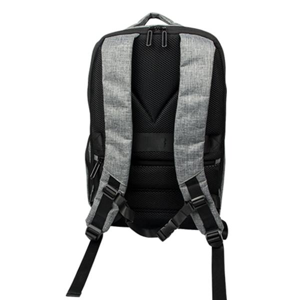 • Mochila cinza e preta com alças almofadadas e costas acolchoadas