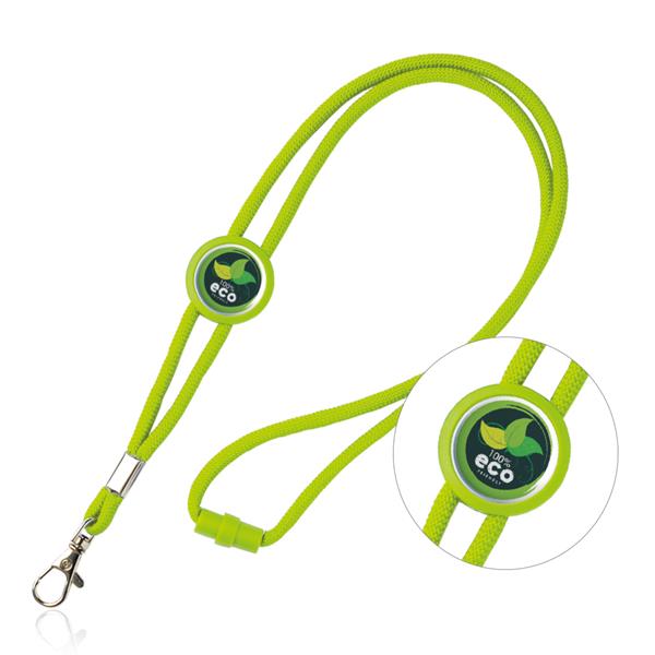 • Cordão verde limão com mosquetão e botão ecológico