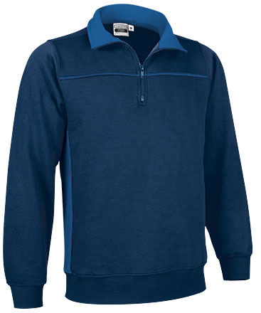 Sweatshirt azul escuro com gola cinza e fecho de correr até ao peito