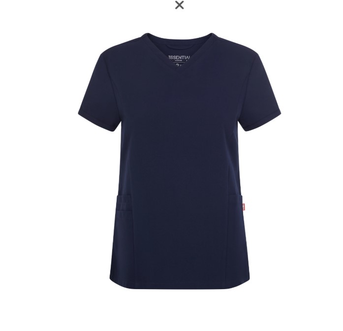 • T-shirt azul escuro feminina com bolsos frontais e decote em V